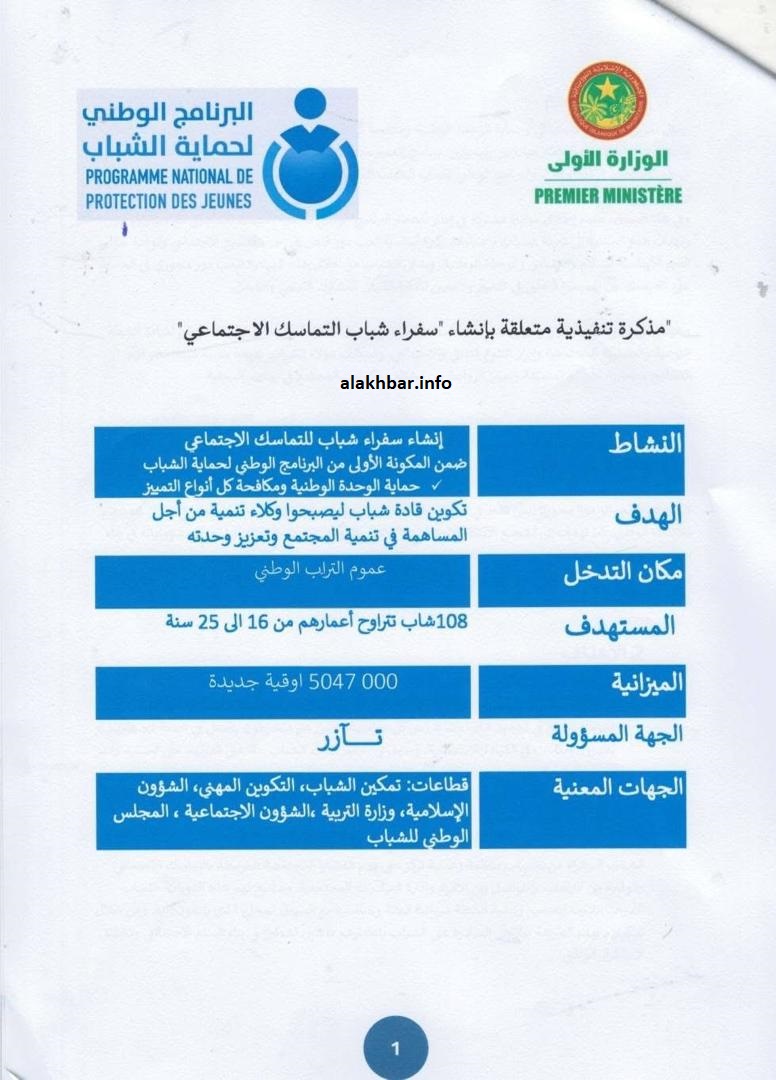 وبناء على هذا البرقية طلبت الوزارة من الولاة اختيار شابين من كل مقاطعة للمشاركة في المكونة الأولى من البرنامج الوطني لحماية الشباب، والمتعلقة بحماية الوحدة الوطنية، ومكافحة كل أنواع التمييز.