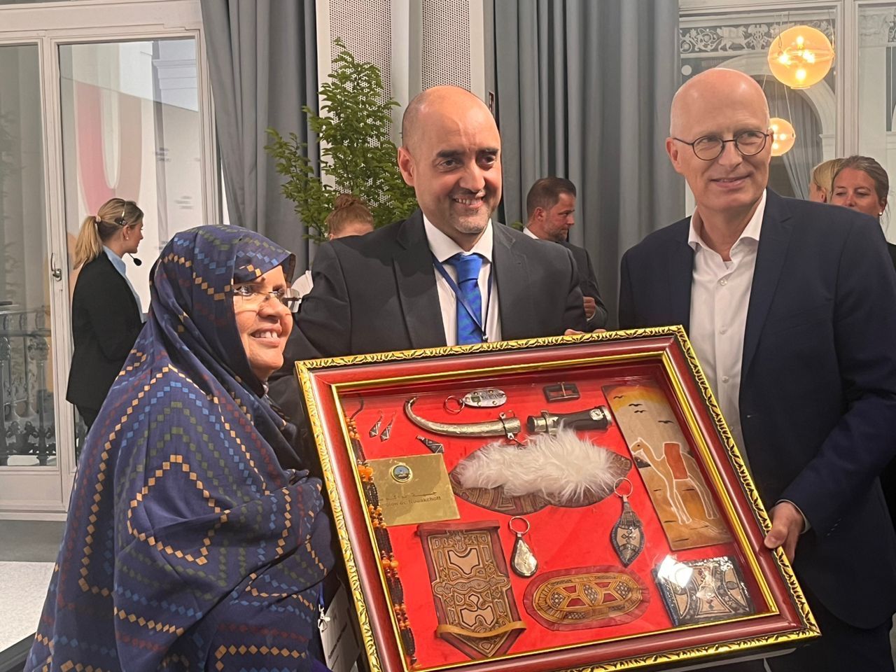 رئيسة جهة نواكشوط، فاطمة عبد المالك، قدمت خلال اليوم الأول للمؤتمر، هدية رمزية لعمدة مدينة هامبورغ، بيتر تشينتشر، تمثلت في مجموعة أدوات وأثاث يدوي من صنع الحرفيين التقليديين الموريتانيين، تعكس حياة البدو وثقافة الصمود والتكيف في البيئة الصحراوية، كما وجهت له دعوة رسمية لزيارة العاصمة نواكشوط.