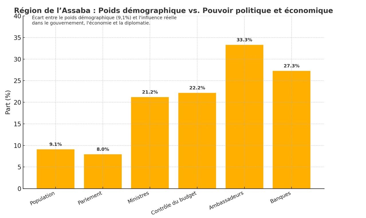 أي أن أبناء الولاية – بالإضافة إلى رئاسة الجمهورية – يشغلون 21.21% من الحقائب الوزارية، وهي نسبة تفوق بوضوح وزنهم الديموغرافي وتمثيلهم البرلماني.