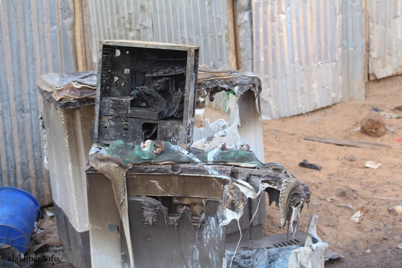 ملابس الزبناء، غسّالتان، كاويات، طاولاتٌ، مروحة، جهاز كمبيوتر، مكتبة صغيرة، ومبلغ 10.000 أوقية.. تلك أبرز محتويات المغسلة التي ودّعها ولد خطري بابا بآخر نظرة مساء الاثنين 23 إبريل وهو يوصد أبواب محله التجاري؛ لتشهد طبقة الطلاء الأسود الجديدة بجدران المحلّ الداخلية على قوة الحريق الذي خلّف رمادًا وخشبًا متفحّمًا وهياكل حديدية أعاد الحريق بفوضوية تشكُّل قطع البلاستيك التي كانت تكسوها.