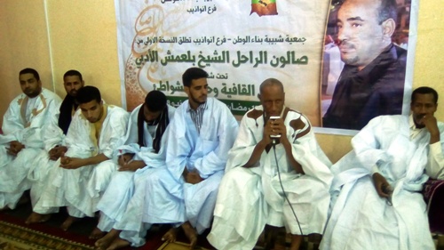 الأخبار(نواذيبو) - أطلق فرع جمعية شبيبة بناء الوطن أول صالون أدبي للشاعر الراحل الشيخ ولد بلعمش تحت عنوان: رحيل القافية وحنين الشواطئ بحضور المندوب الجهوي لوزارة الشباب والرياضة ومندوب وزارة الثقافة والصناعة التقليدية محمد المامي ولد البو وممثل عن عمدة نواذيبو وكوكبة من الشعراء والأساتذة والإعلاميين في المدينة.