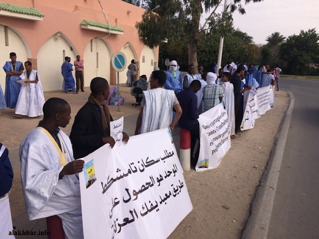 الأخبار (نواكشوط) ـ دعا سكان مركز اطويل الإداري ومقاطعة تامشكط خلال وقفة نظموها صباح اليوم 16/03/2017 أمام القصر الرئاسي بنواكشوط، الحكومة الموريتانية إلى فك العزلة عن منطقتيهما.