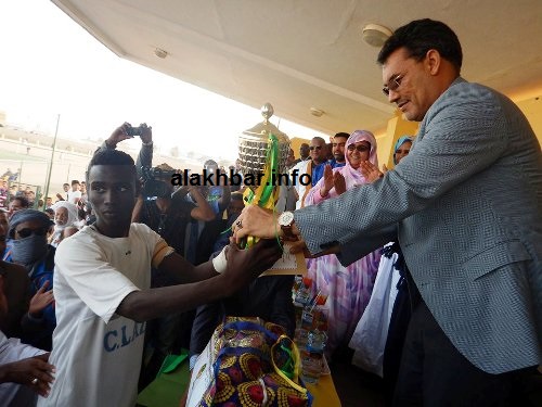 وسلم والي الولاية محمد ولد محمد راره كأس البطولة للاعدادية ومبلغ مالي فيما سلم كأس ومبلغ مالي للوصيف (فريق ثانوية المنهل الحرة).