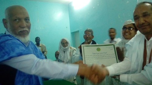 وسلم حاكم المقاطعة المركزي أحمدنا ولد سيد أب جائزة حسن سيرة مهنية للمدير المتقاعد محمد لمين ولد مسعود فيما تسلم جائزة من أساتذة نواذيبو.
