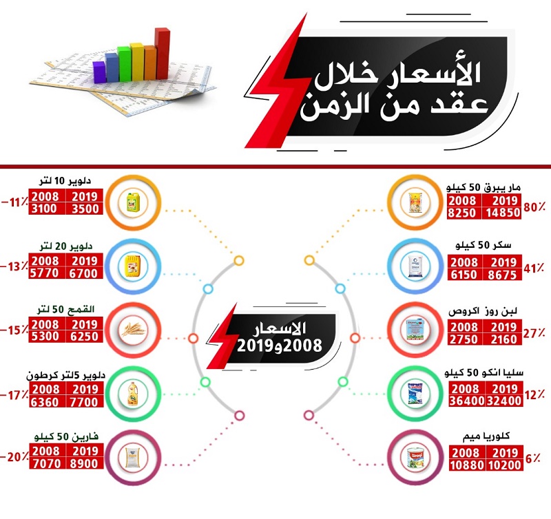 الأخبار (نواكشوط) – أظهرت دراسة أعدتها الجمعية الموريتانية لحماية المستهلك حول ارتفاع أسعار المواد الاستهلاكية خلال العقد الأخير، ارتفاع أسعار الأرز من النوعيات الممتازة بنسبة 80%، فيما وصلت زيادة أسعار السكر إلى 25%.