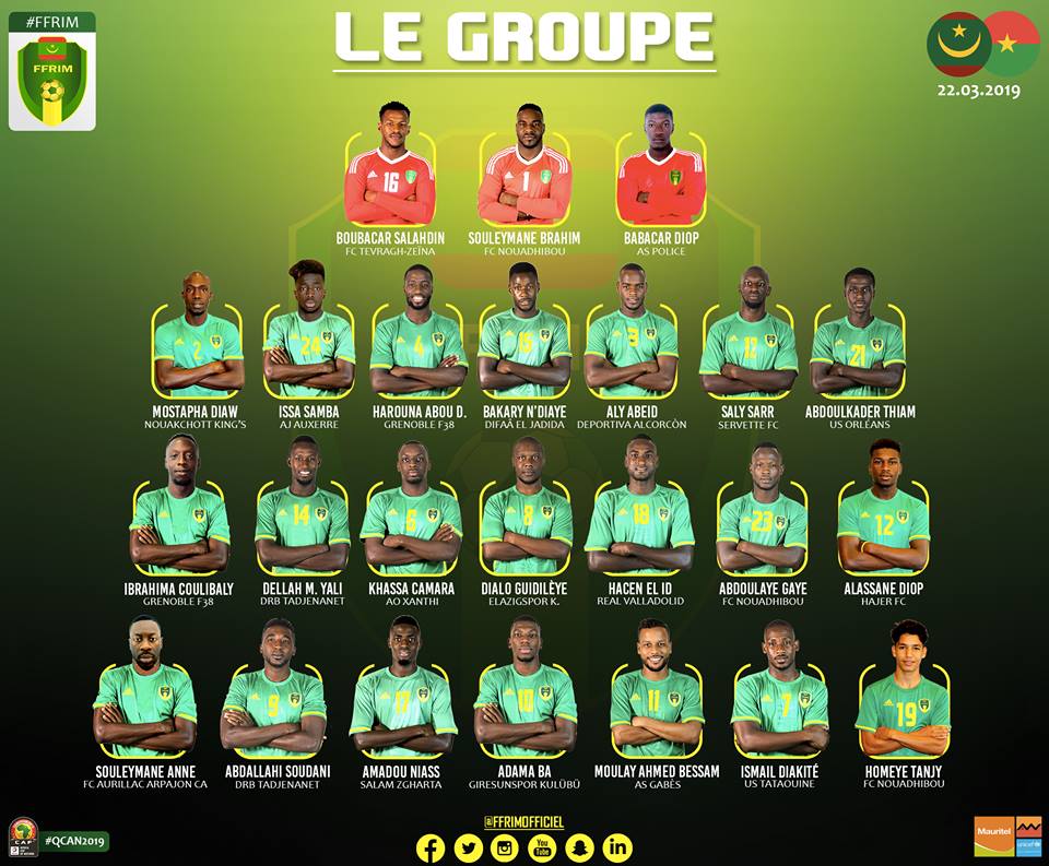 الأخبار (نواكشوط) أعلن مدرب المنتخب الوطني، كورينتان مارتينس اليوم الثلاثاء عن قائمة تتكون من 24 لاعباً، لمواجهة بوركينا فاسو يوم 22 من شهر مارس الجاري، لحساب الجولة الأخيرة من التصفيات المؤهلة لكأس إفريقيا للأمم 2019،