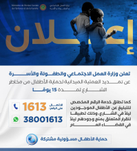 وزارة العمل الاجتماعي تُعلن تمديد حملة حماية الأطفال 15 يوما