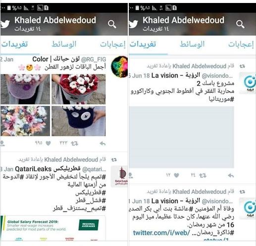 وانتشر على صفحات فيسبوك الموريتاني خلال اليومين الأخيرين عشرات التدوينة التي تعلن التبرأ من حسابات على اتويتر، فيما اتفقت جل التدوينات على أن عمل الحسابات مقصور على إعادة تغريد منشورات صفحتي "رؤية"، و"ويكيليكس قطر".