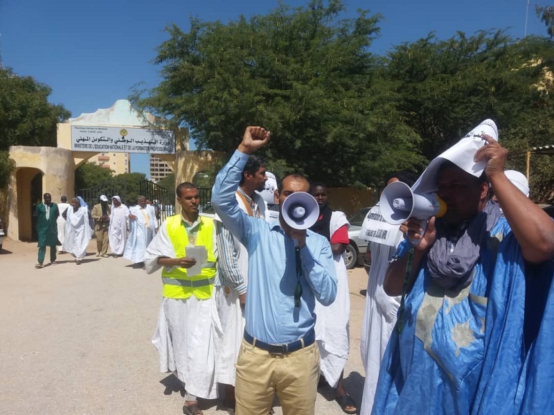 الأخبار (نواكشوط) – نظمت النقابة الحرة للمعلمين اليوم الأربعاء وقفة احتجاجية أمام وزارة التهذيب، وذلك لمطالبة الوزارة بالاستجابة لمطالبها، وإعادة الاعتبار للمعلم، ومنح التعليم ما يستحق من تقدير واهتمام.