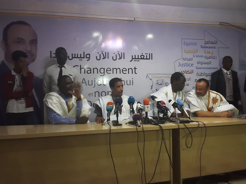 وكشف المرشحون الأربعة، وهم محمد ولد مولود، وكان حاميدو بابا، وسيدي محمد ولد بو بكر، وبيرام الداه اعبيدي عن قراراتهم خلال مؤتمر صحفي مشترك عقدوه الثانية فجرا في مقر حملة المرشح ولد ببكر.