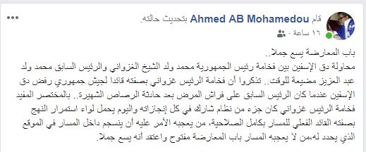 وهذا نص تدوينة المستشار أحمد ولد محمدو: