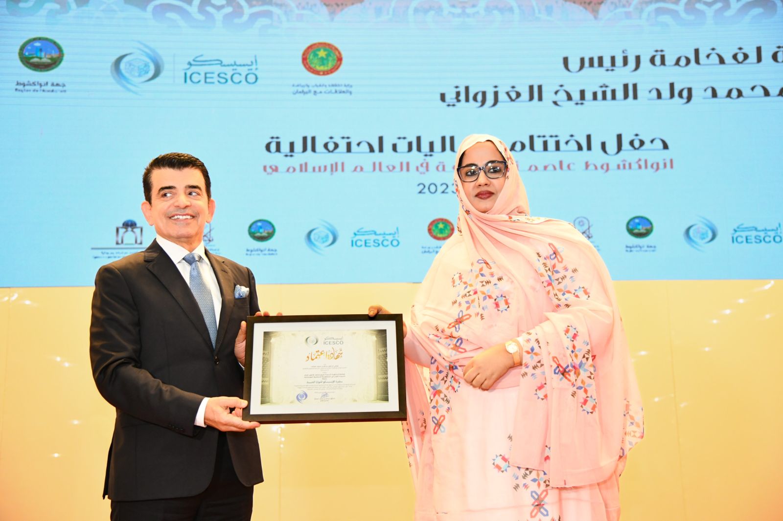 وخلال النشاط المؤذن بانتهاء الاحتفالية الثقافية، أعلنت المنظمة الإسلامية للتربية والعلوم والثقافة "الإيسيسكو"، تسمية حرم الرئيس مريم بنت الداه سفيرة نيات حسنة معتمدة من قبل المنظمة.