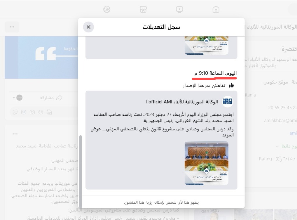 ونشر البيان على صفحة الرسمية للوكالة الموريتانية للأنباء الساعة: 17:16 دقيقة، وكان خاليا من أي تعيين، حيث ختم ببيان قدمه وزير البترول والمعادن والطاقة يتعلق بتنفيذ الاستراتيجية الوطنية لخلق المحتوى المحلي في قطاع الصناعات الاستخراجية والطاقة (المعادن والنفط والغاز).