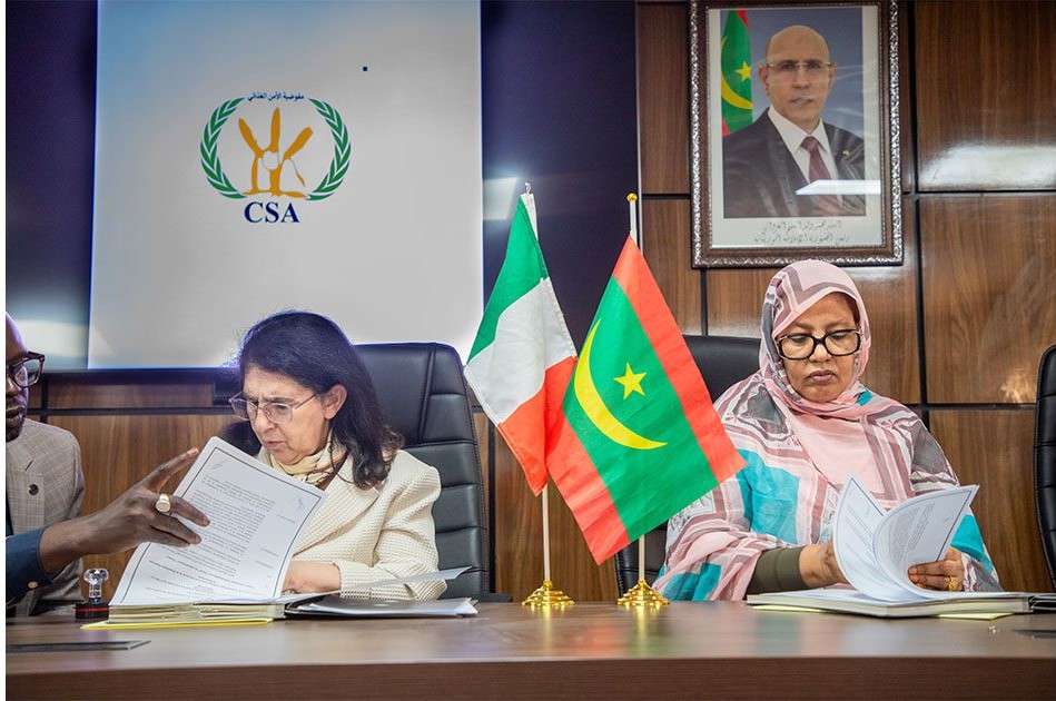 ووقع الاتفاق على الجانب الموريتاني مفوضة الأمن الغذائي فاطمة بنت خطري، وعن إيطاليا سفيرتها في نواكشوط لورا بوتا.