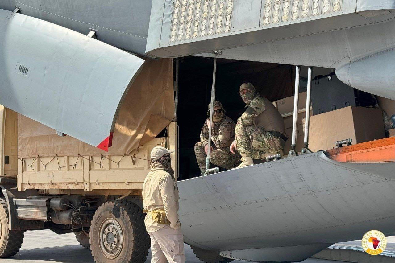 وتُنقل المعدات العسكرية، بما في ذلك مركبات مدرعة من طراز (BTR-82A) ومدافع "هاوتزر" من طراز (Msta-B وD-30) وطائرات استطلاع مُسيّرة، عبر ميناء كوناكري الغيني على متن سفن روسية خاضعة لعقوبات دولية، كما أن بعض المعدات بحسب تقارير، نقلت جوا من قاعدة "الخادم" الجوية الليبية.