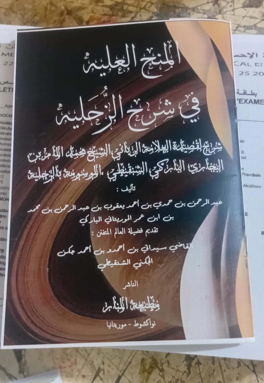 الأخبار (نواكشوط) - صدر حديثًا عن "مطبعة المنار" في نواكشوط شرحٌ لقصيدة العلامة الشيخ محمد المامي بن البخاري، الموسومة بـ"الزحلية"، للدكتور الشيخ عبد الرحمن بن حمدي بن عمر.