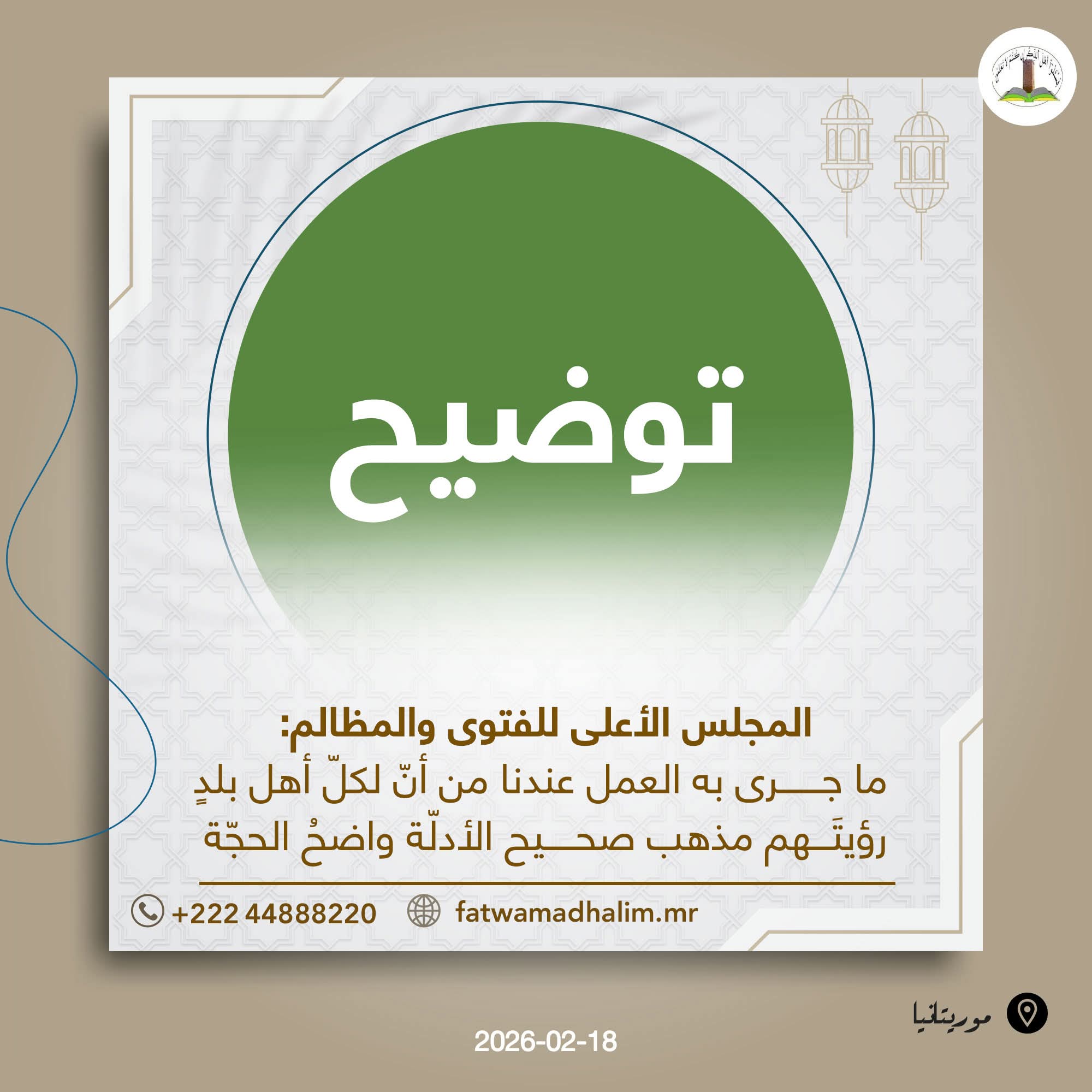 الأخبار (نواكشوط) - وصف المجلس الأعلى للفتوى والمظالم المذهب المتبع والرأي الفقهي المتبع بشأن الأهلة في موريتانيا والمتمثل في أن لكل أهل بلد رؤيتهم، هو مذهب صحيح الأدلة واضح الحجة.