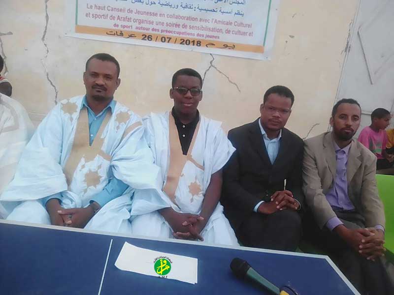 الأخبار (نواكشوط) – نظم المجلس الأعلى للشباب أمس الخميس أمسية ثقافية في مقاطعة عرفات خصصها للتوعية بمخاطر عدد من المسلكيات الضارة، كالغلو والتطرف والإرهاب وحرمة تعاطي المخدرات والخمور.