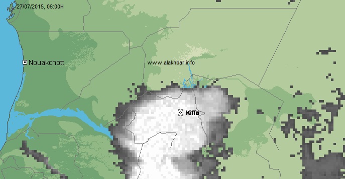 كما يتوقع أن تكون مناطق واسعة من الحوضين، جل لعصابة، غيدى ماغة وغورغل وكذلك أقصى جنوب شرق لبراكنة قد شهدت أو تشهد الآن تساقط أمطار خفيفة إلى متوسطة منذ مساء أمس وحتى منتصف اليوم 27 يوليو الجاري.