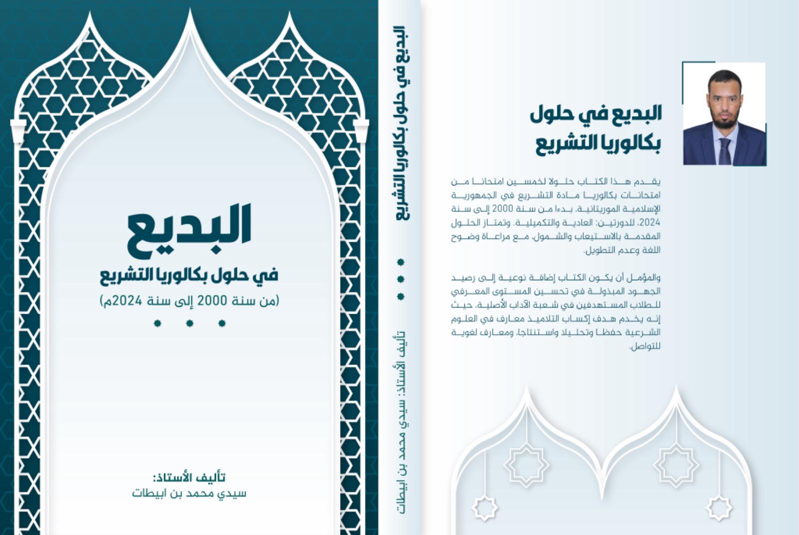 الأخبار (نواكشوط) – صدر مؤخراً عن “دار أكوان للنشر والترجمة والتوزيع” كتاب بعنوان: “البديع في حلول بكالوريا التشريع”، لمؤلفه الأستاذ والباحث سيد محمد ولد ابيطات.
