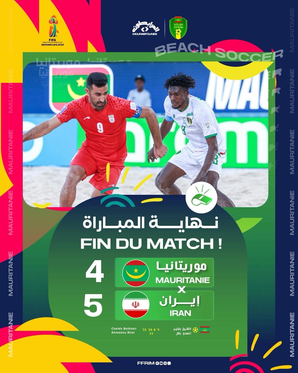 الأخبار (نواكشوط) – خسر المنتخب الوطني لكرة القدم الشاطئية أمام نظيره الإيراني، وذلك في أولى مبارياته بكأس العالم.