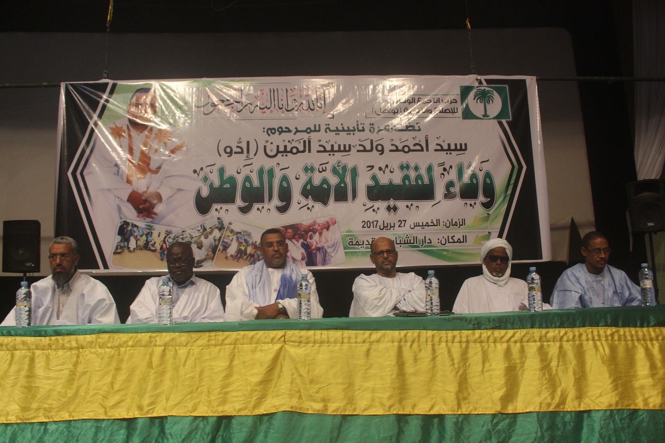 وشهدت التظاهرة مداخلات شعرية لرثاء المرحوم سيد أحمد ولد سيد الأمين الملقب “أدو”، وعرض فلم تعريفي بالفقيد من إعداد الأمانة الوطنية للإعلام والثقافة للحزب.