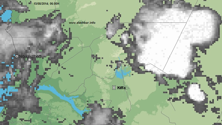 وحسب آخر صور الأقمار الاصطناعية الملتقطة فجر اليوم فإنه من المتوقع أن تتجه بقية السحب المتواجدة الآن على تكانت نحو الجنوب الغربي وخاصة نحو الحوض الغربي، لعصابة، غورغل، لبراكنة وترارزة وأن تؤدي إلى تساقط الامطار المتوسطة ابتداء من منتصف نهار اليوم الجمعة بإذن الله تعالى.