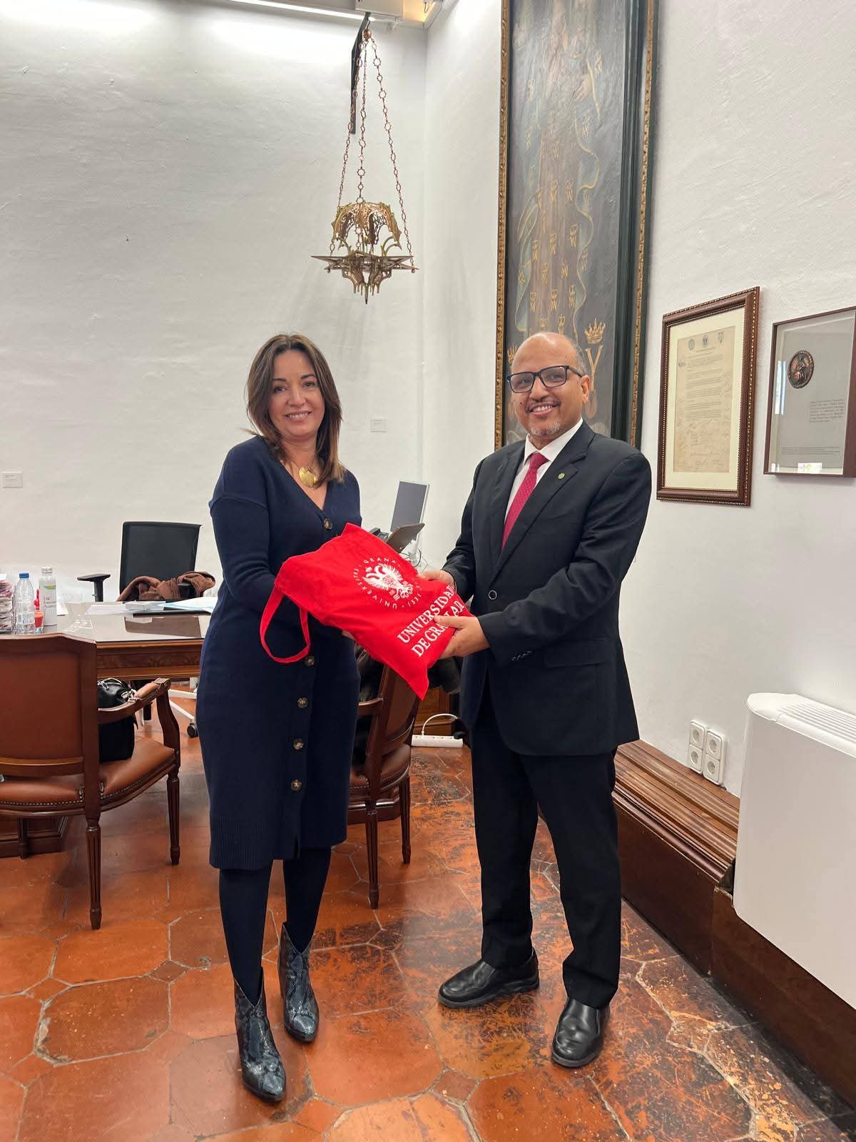 فيما تناولت إمكانيات تطوير التعاون الثنائي مع نائبة رئيس جامعة غرناطة الدكتورة إنماكولادا ماريرو روشا عبر إطلاق برامج أكاديمية مشتركة على رأسها الإعداد المبدئي لبرنامج ماجستير مشترك يعنى بقضايا الهجرة والتطرف العنيف في منطقة الساحل.