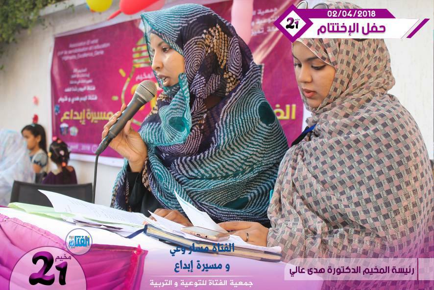 الأخبار (نواكشوط) – اختتمت جمعية الفتاة للتوعية والتربية مساء أمس الاثنين فعاليات مخيمها الحادي والعشرين، والذي انعقد بمباني المعهد العالي للدراسات والبحوث الإسلامية، وحمل شعار: “الفتاة: مسار وعي.. ومسيرة إبداع..”.