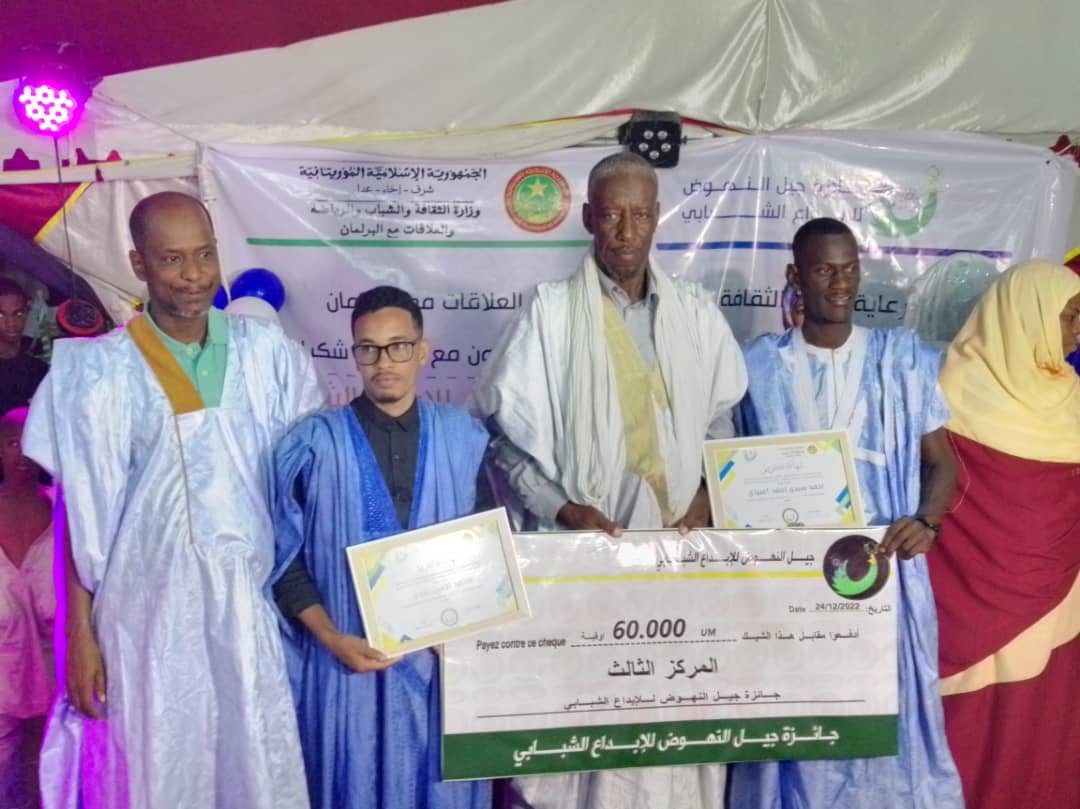 وأطلق “جيل النهوض” الجائزة السنوية يوم 15 من شهر سبتمبر الماضي، وذلك بالتعاون مع منظمة شكرا، وبدعم ورعاية من وزارة الثقافة والشباب والرياضة والعلاقات مع البرلمان، وعرفت المسابقة إقبالا واسعا من شباب ولاية انواكشوط الجنوبية.