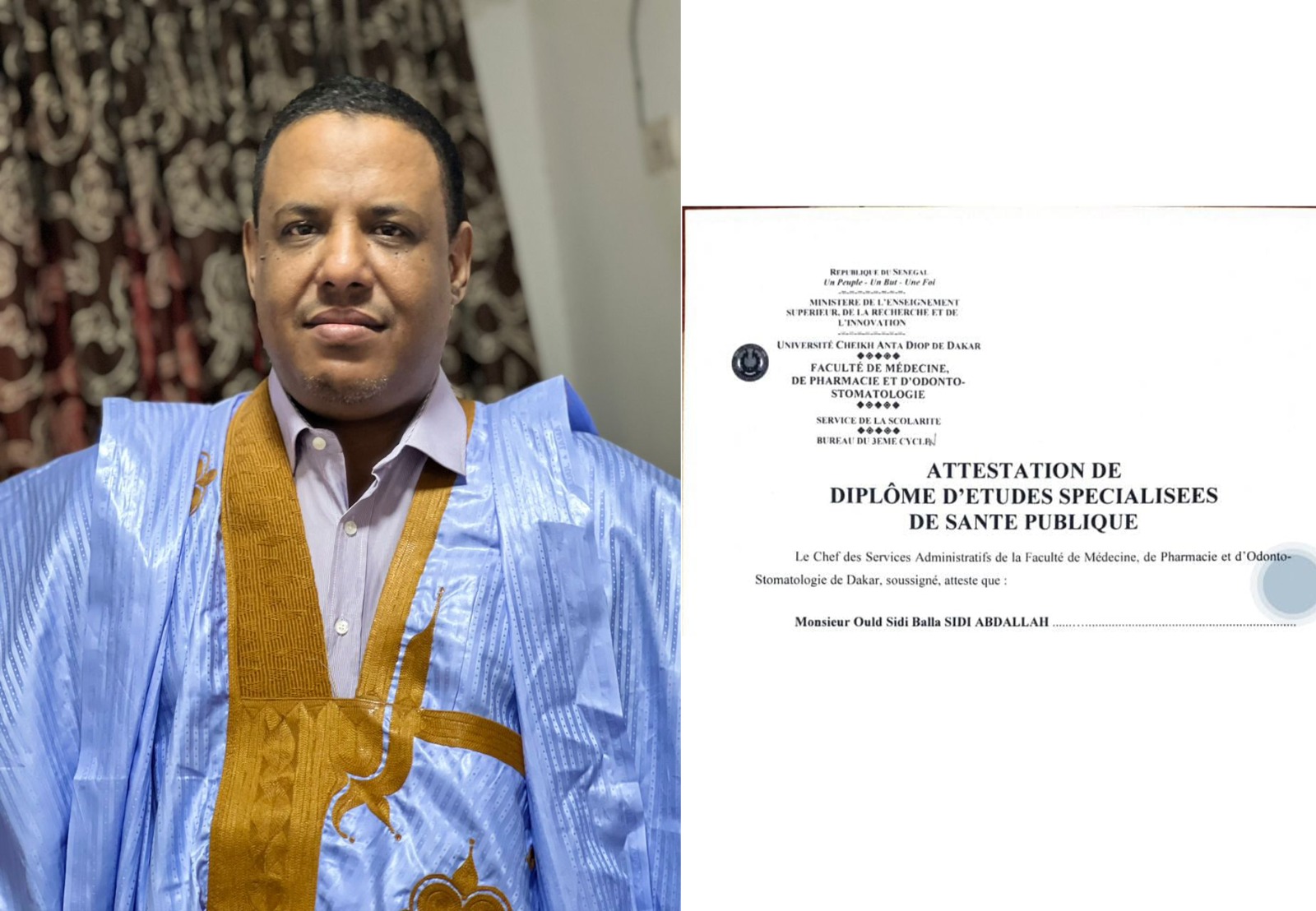 سيدي الوزير مؤسف جدا أن تكون عندك أقدمية 10سنوات في الوزارة 6سنوات منها كطبيب معالج في مستشفى أطار و4سنوات في معهد الصحة وتطوير الخيارات والمتابعة والتقويم(ISED) جامعة الشيخ أنتا ديوب في داكار بالسنغال تخصص الصحة العمومية الذي يعد أهله علي رؤوس الأصابع، ومع ذلك تقضي 4 أشهر تتردد علي إدارة المصادر البشرية دون أن تجد أفق أو اهتمام.