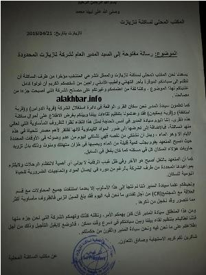 ونحيطكم علما سيادة المدير أننا لم نلجأ إلى هذا الأسلوب إلا بعدما استنفدنا جميع المحاولات مع قسم العلاقات مع المجتمع (CR) من أجل تفادي ما نحن فيه اليوم فقد بلغ السيل الزبى فالظروف مأساوية أكثر مما نتصور وقد نخجل من ذكرها.