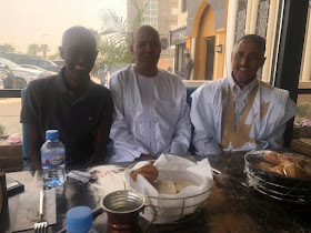 في الصورة أتوسط صديقي الفاضلين إبراهيما با وإسلمو وقد التقطها لبرفسير محمد باب سعيد. منذ فترة وأنا أدعو الصديقين الفاضلين لحضور حلقة من صالون المدونين للحديث عن تجاربهما في غوغل وفيسبوك، وعن قصة أول اتصال لموريتانيا بالأنترنت، وأرجو أن يتحقق ذلك في أحد مواسم الصالون القادمة.