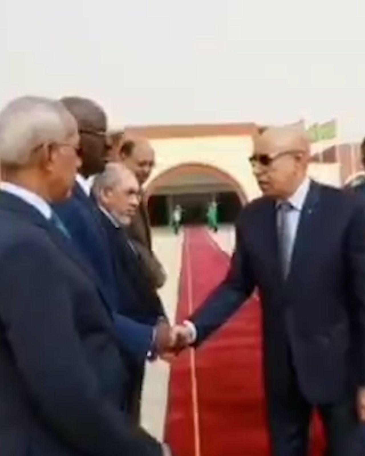 وتم تداول المقطع الذي سجل صباح الخميس خلال مغادرة ولد الغزواني البلاد باتجاه الجزائر على نطاق واسع عبر الواتساب.