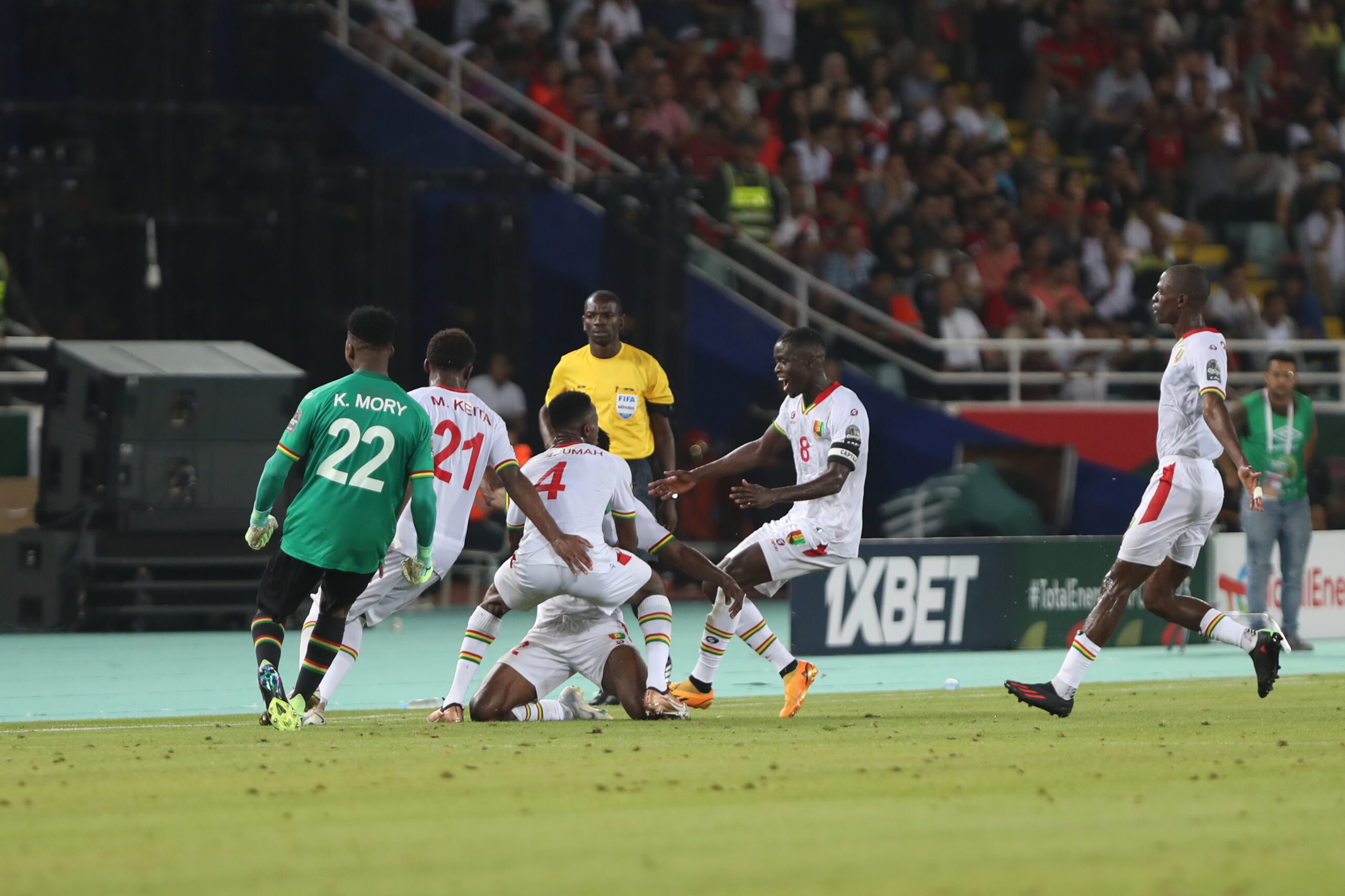 وسجل أول أهداف غينيا خلال اللقاء الذي جرى على أرضية المجمع الرياضي “الأمير مولاي عبد الله” بالرباط، أغويبو كامارا في الدقيقة 10، قبل أن يضيف زميله جاكوس بوامبا الهدف الثاني في الدقيقة 54، ويحرز ساليفو سوماه الهدف الثالث في الدقيقة 85.