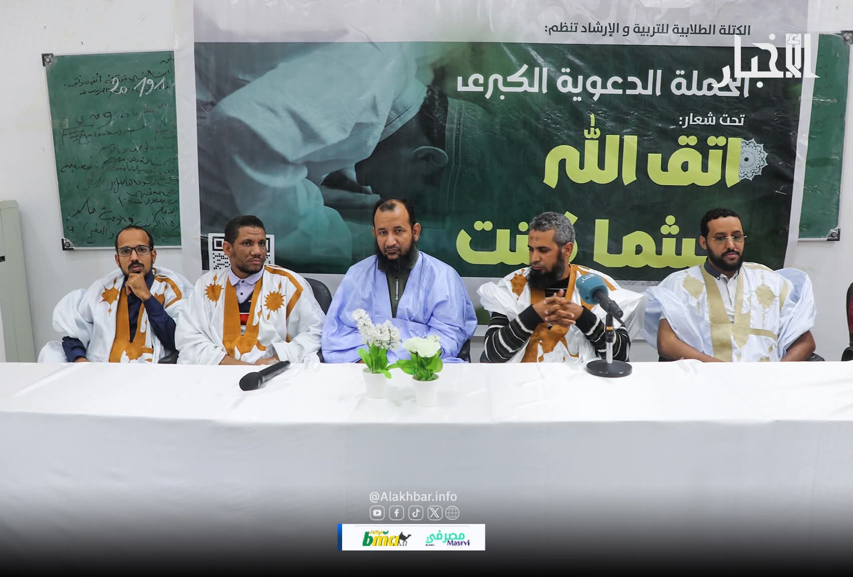 الأخبار(نواكشوط) – أطلقت الكتلة الطلابية للتربية والإرشاد اليوم الاثنين حملتها الطلابية الدعوية تحت عنوان : ” اتق الله حيثما ما كنت”، وذلك من كلية التقنيات بجامعة نواكشوط.