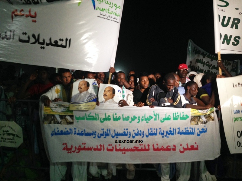 الأخبار (نواكشوط) – عرف المهرجان الافتتاحي لحملة التعديلات الدستورية والذي ترأسه الرئيس الموريتاني محمد ولد عبد العزيز في حي “ملح” بمقاطعة توجنين بولاية نواكشوط الشمالية العديد من الكواليس، حضر جزء منها على الشاشة، وغاب أكثرها بعيدا عن الكاميرات المنتشرة في المنطقة.