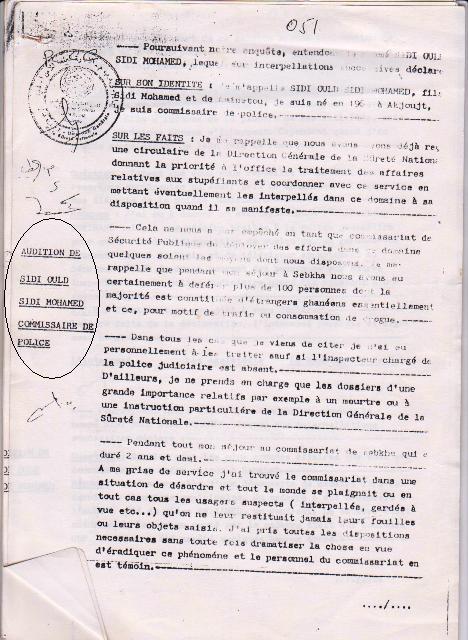 المفوض سيدي ولد سيدي محمد المولود سنة 1960 في أكجوجت بولاية إنشيري تحدث للمحققين الموريتانيين عن العديد من عمليات الاتجار بالمخدرات التي وقعت أثناء توليه إدارة مفوضية المقاطعة الخامسة بالعاصمة انواكشوط.