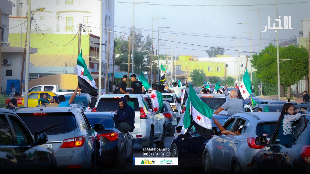 وانطلقت المسيرة من دوار القدس وصولًا إلى مبنى السفارة، وسط المدينة، حيث رفعت السفارة العلم السوري الذي يُمثل الثورة.