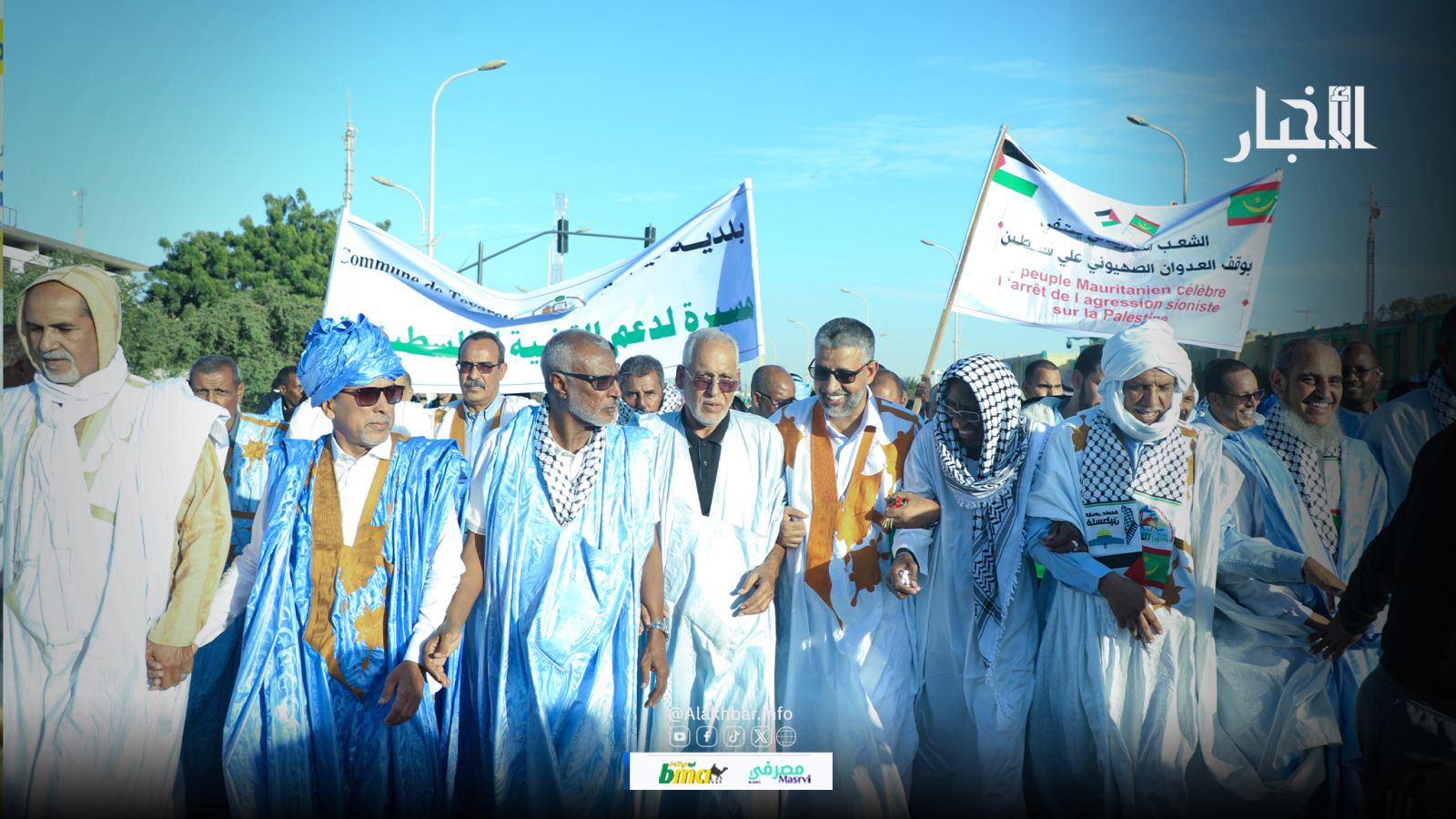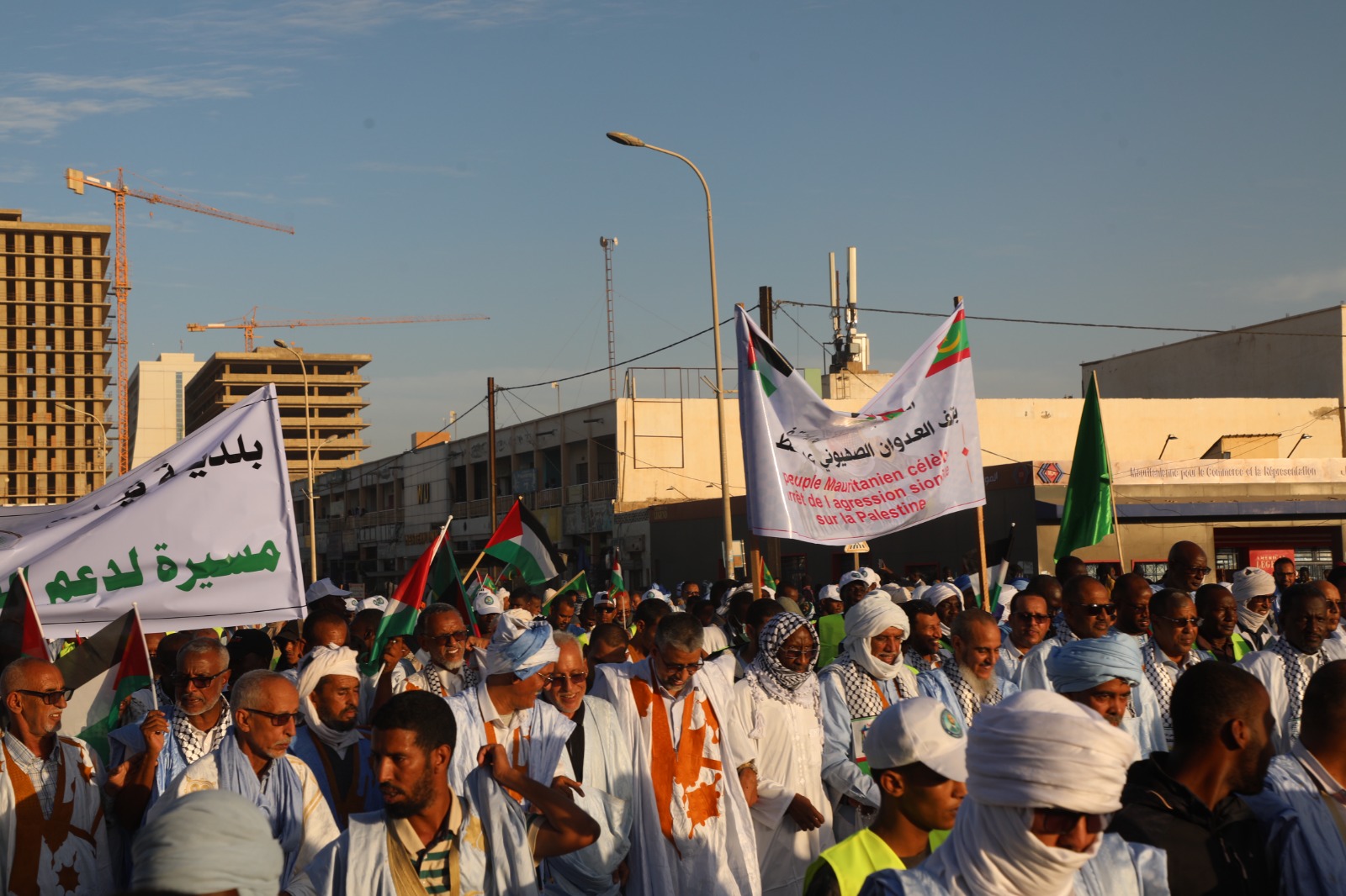 وانطلقت المسيرة من جامع ابن عباس وسط نواكشوط وانتهت أمام مكاتب ممثلية الأمم المتحدة بمشاركة رؤساء أحزاب سياسية وهيئات مجتمع مدني ومناصرون داعمون لفلسطين.