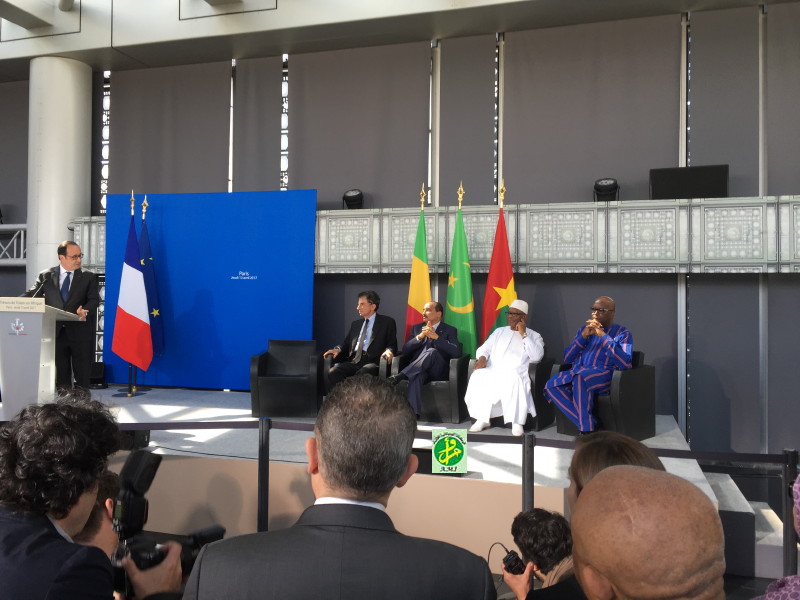 وحضر حفل افتتاح المعرض كل من الرئيس الموريتاني محمد ولد عبد العزيز والرئيس الفرنسي افرانسوا اولاند والرئيس المالي إبراهيم أبو بكر كيتا والرئيس البوركينابي روك كابوري.