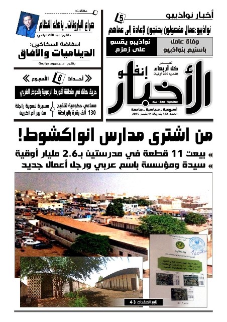 الأخبار (انواكشوط) – اقتسمت شخصيتان غير مشهورتان في مجال الأعمال أهم القطع الأرضية في المدرستين رقم: 1 و 2 حيث اشترت سيدة 4 قطع أرضية بمبلغ قارب المليار أوقية، فيما اشترى رجل الأعمال الناشئ 4 قطع أخرى بملغ قريب من المليار، وتوزعت مؤسسة تجارية، ورجلا أعمال القطع الثلاثة المتبقية.