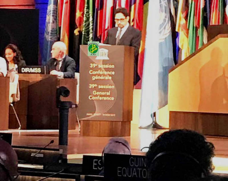 بداية أودُ أن تسمحوا لي أن أهنأ السيدة الرئيسة بمناسبة انتخابها رئيسة للمؤتمر العام لهذه الدورة التاسعة و الثلاثين، كما أهنئ المديرة العامة الجديدة بمناسبة انتخابها و كذلك المديرة العامة المنتهية ولايتها علي العمل الممتاز الذي أنجز خلال فترة انتدابها.