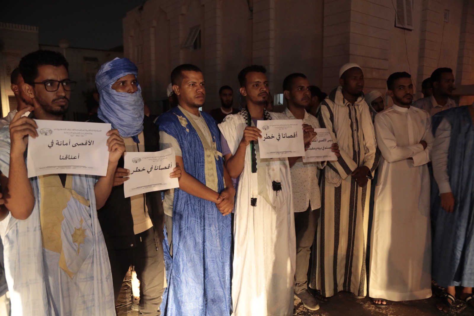الأخبار (نواكشوط) – نظم عشرات المواطنين الموريتانيين ليلة البارحة وقفة احتجاجية بالعاصمة نواكشوط تنديدا بالاقتحامات المتكررة للمسجد الأقصى المبارك من طرف قوات الاحتلال الإسرائيلي، واعتدائها على المقدسيين المرابطين.