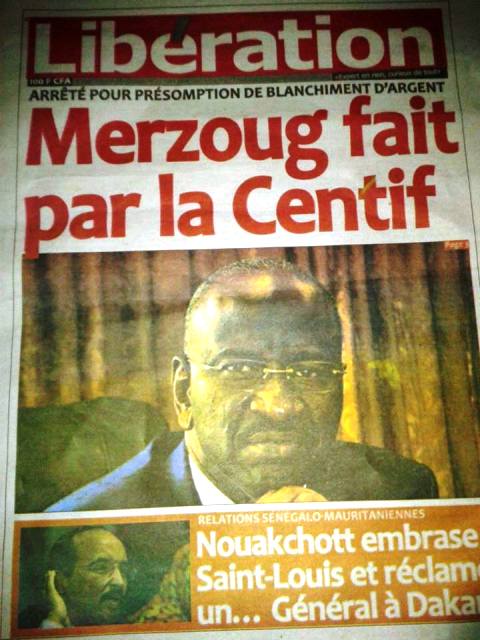 وفي سياق آخر ذكرت الصحيفة أن السلطات الأمنية السنغالية أوقفت ولد مرزوك على خلفية اشتباه الخلية الوطنية لمعالجة المعلومات المالية بوجود مبلغ بقيمة حوالي 150 مليون أوقية، و أشارت الصحيفة إلى أن تقرير الخلية – و هي جهاز رسمي مكلف بتتبع عمليات تبييض الأموال – أوصي بضرورة الاستماع لولد مرزوك في هذا الملف.