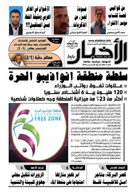 وقالت الصحيفة في عددها الصادر اليوم الأربعاء 26 مارس 2014 إن علاوات هؤلاء الستة تفوق 120 مليون أوقية سنويا، وهو ما يتجاوز نسبة 23% من الميزانية السنوية لمنطقة انواذيبو الحرة، والتي بلغت في ميزانية 2014 507 مليون أوقية.