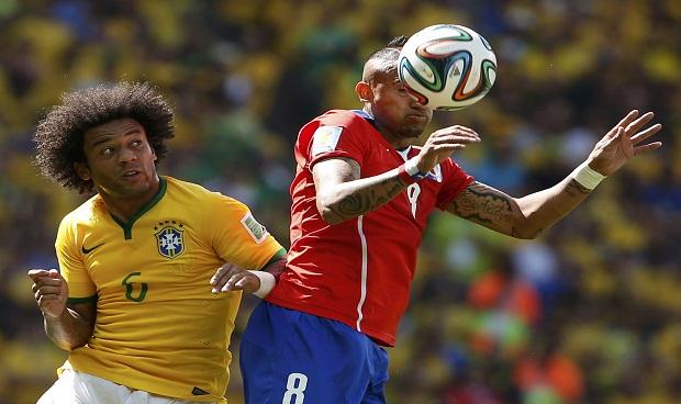 واعتمدت البرازيل على الاختراق من الناحية اليسرى عن طريق جبهة تضم نيمار وهالك وخلفهما مارسيلو لكن مدرب تشيلي فطن إلى الأمر سريعا فأغلق تلك الجبهة بثلاثة لاعبين على ما يبدو .