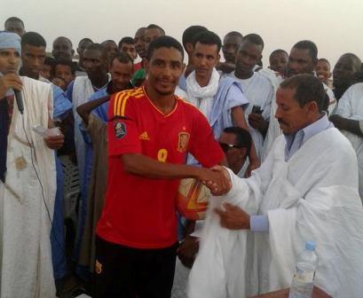 و أشرف حاكم قطع لحجار المساعد موسى امباي رفقة عائشة بنت محمد البخاري العمدة المساعدة على حفل توزيع الجوائز بحضور جمهور رياضي معتبر.