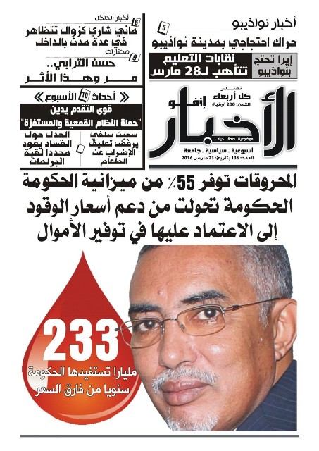 وأكدت الصحيفة في عددها اليوم الأربعاء تحول الحكومة الموريتانية من داعم للمحروقات في العام 2009، إلى رابح لأكثر من 230 مليار أوقية منه العام الحالي، حيث كانت في العام 2009 تدعمه بحوالي 100 أوقية من سعر كل لتر، قبل أن يتناقص هذا المبلغ، حيث وصل 47 أوقية 2011، وهو ما أعلنه الرئيس الموريتاني خلال البرنامج الذي كان يقيمه سنويا، والمعروف بـ"لقاء الشعب"، وذلك خلال النسخة المنظمة في قصر المؤتمرات بانواكشوط.