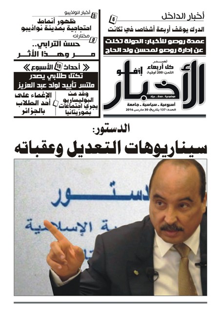 وتؤكد مصادر سياسية لصحيفة “الأخبار إنفو” أن النقاش داخل الكتلة الصلبة للنظام الموريتاني يتركز حول ثلاث سناريوهات رئيسية لتغيير الدستور، هي، سناريو “إعادة التأسيس”، وسناريو التوافق السياسي الشامل، فضلا عن السناريو التقليدي والذي تم لبعض مواد الدستور في العام 2012.